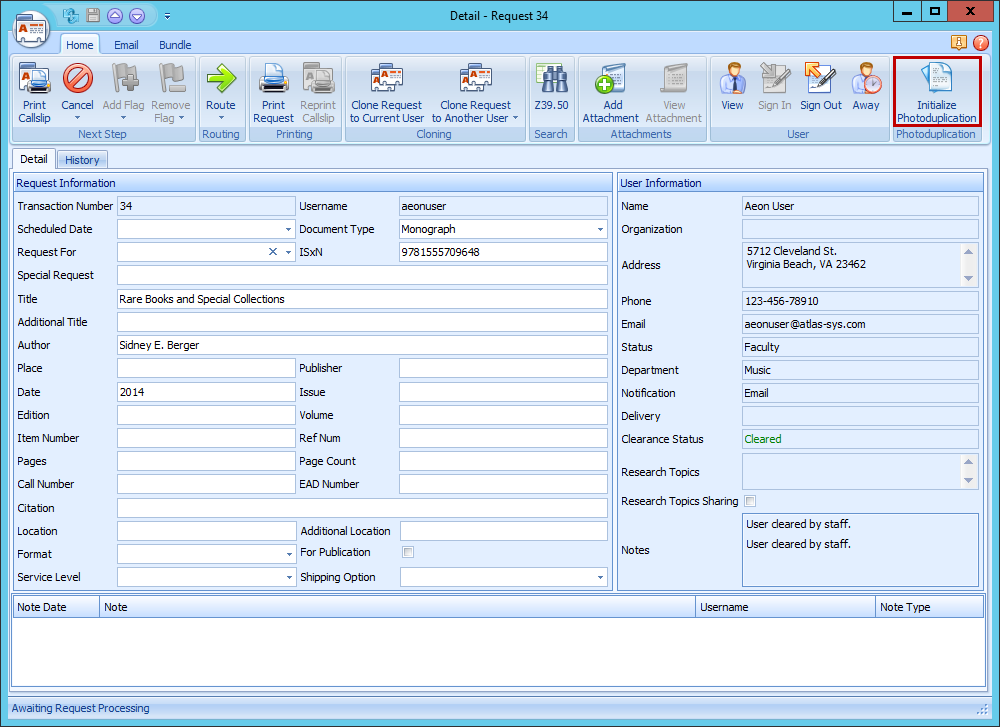 Note: Request processing functionality is currently only supported in the Aeon Desktop Client and cannot be performed from the Aeon Web Client.