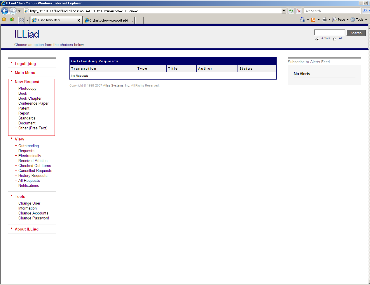 It is possible to create ILLiad Borrowing web pages that are specifically intended only for certain patron types. This will allow you to give certain customer groups, based on patron type, specific request options or information on those type-specific pages that other customer groups will not be able to see or use. These special versions of the ILLiad web pages might contain additional information or they could contain significant functional differences, such as additional request buttons for specific types of requests that others neither know about nor have access to.