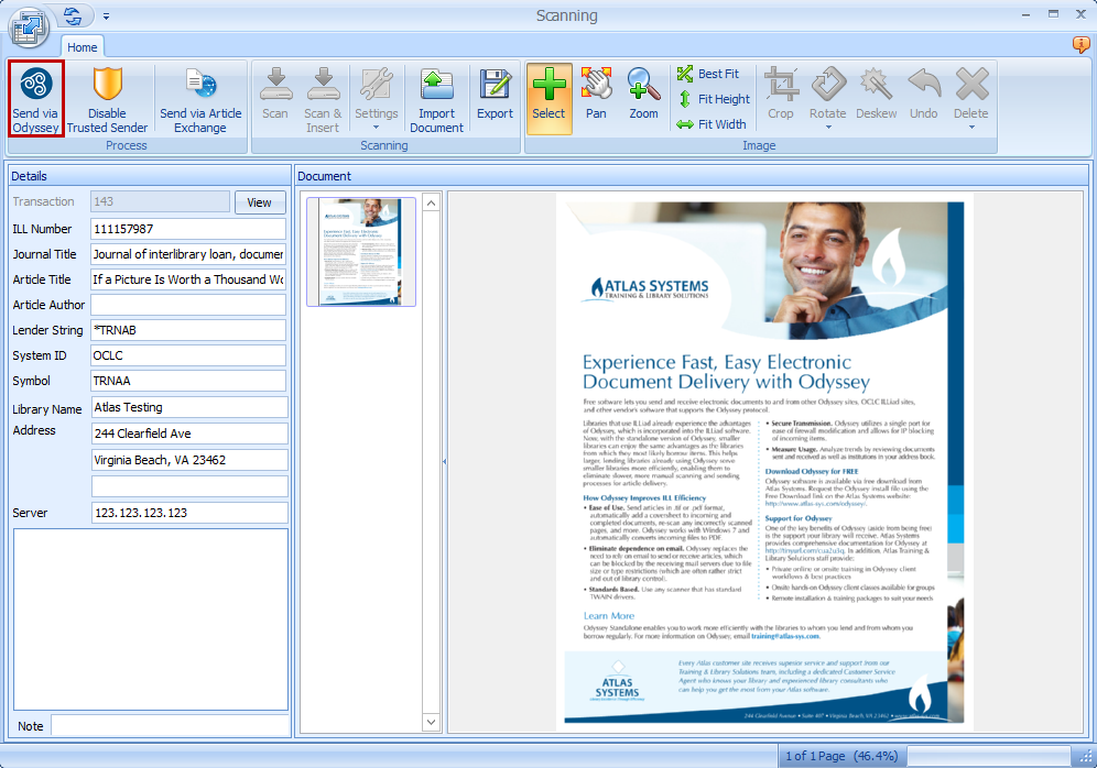 For institutions not already using ILLiad, please contact support@atlas-sys.com to obtain a copy of the Odyssey standalone client file at no cost.