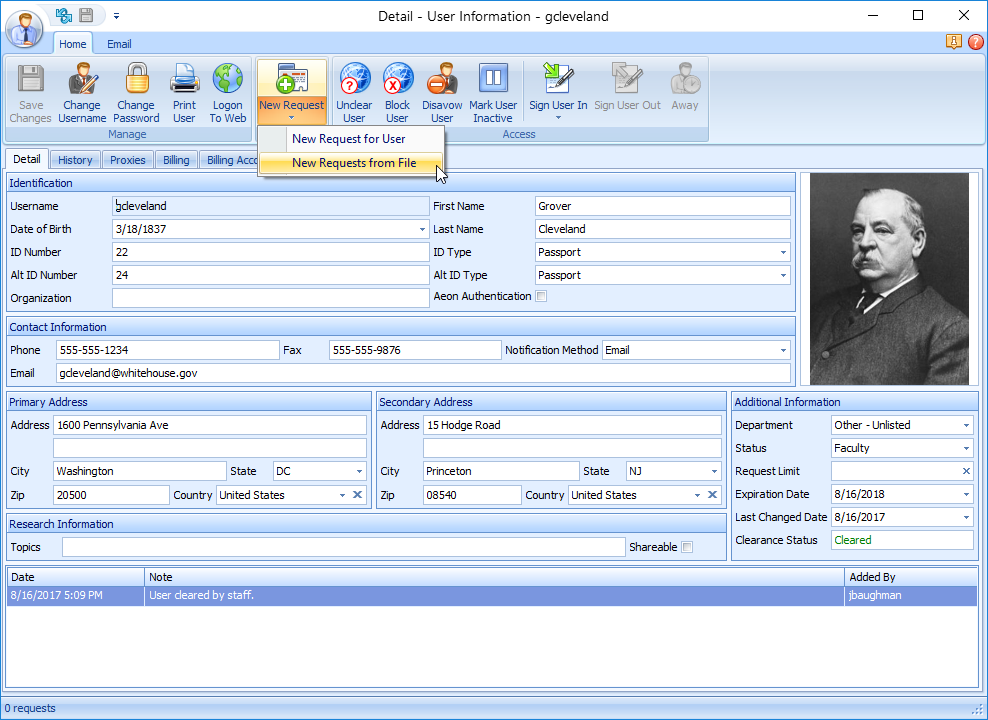 ![]() | You can import an already scanned image and associate it with the selected transaction for delivery to the Borrowing site or customer. This is done using the Import Image button. Clicking this button opens a search window that allows you to grab the file from its location. Select the image you would like to import and click Open. The image appears in the Document window of the scanning form. You can import the following images types: JPEG files (jpg), TIFF files (tif), Bitmap images (bmp) and PNG images (png). Imported images are automatically converted to and transmitted as TIF files, and are converted to PDF files at the Borrowing site before delivery to customers. |