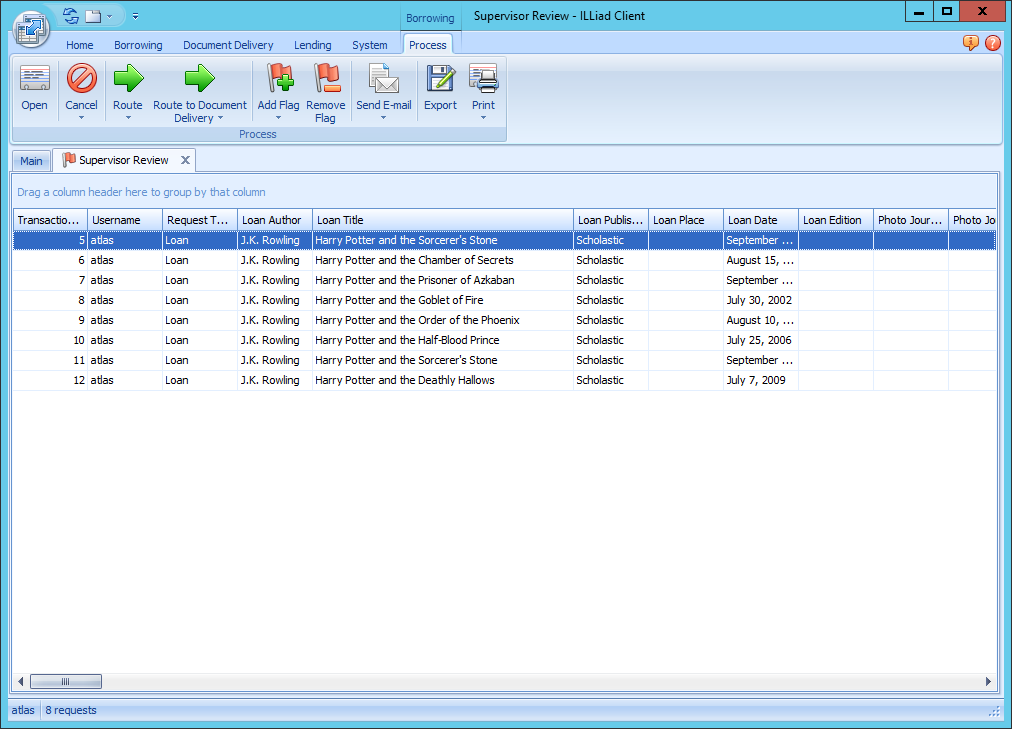 1. From the ILLiad main screen, double-click to open a queue. If more than one request is in that queue, a grid will appear.