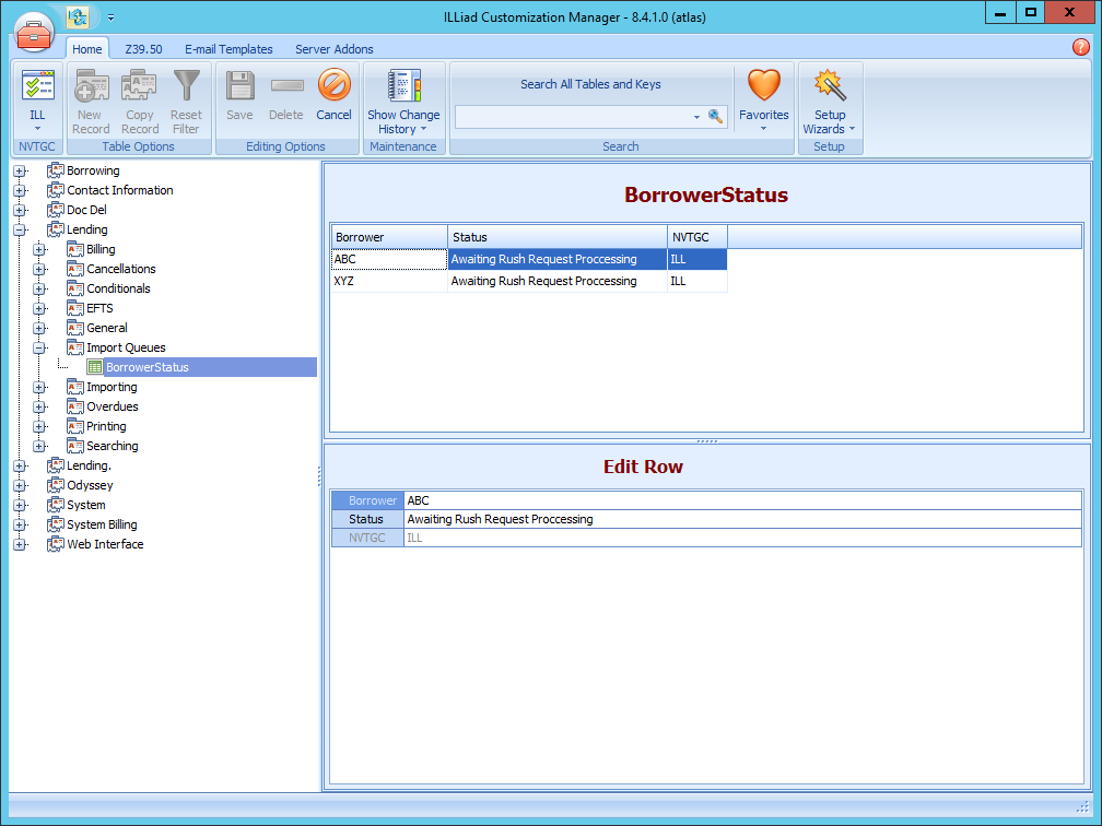 Adding entries to the BorrowerStatus table will let ILLiad know when to filter requests from certain Borrowers to a separate queue. The BorrowerStatus table is found in the ILLiad Customization Manager under Lending | Import Queues | BorrowerStatus.