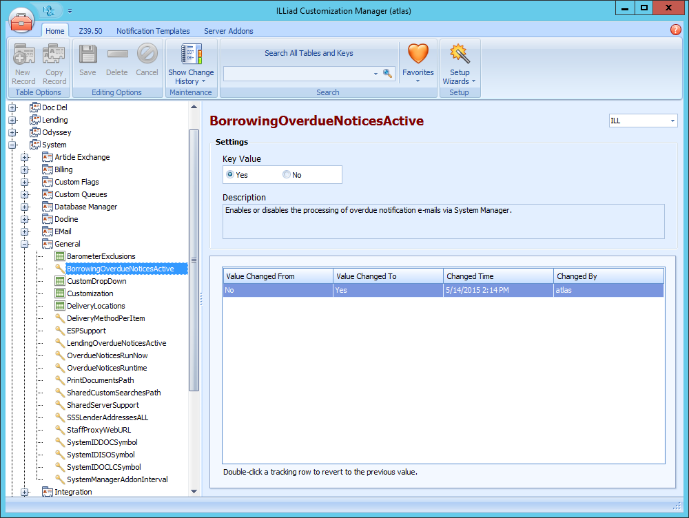 1. Open the ILLiad Customization Manager and navigate to System | General.