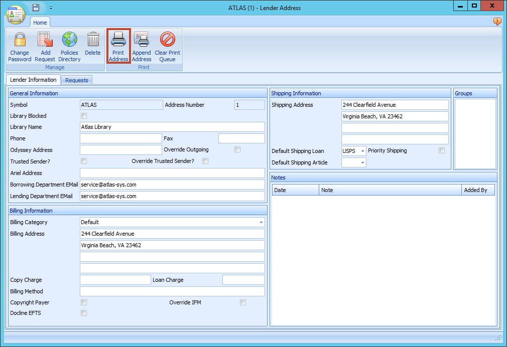 1. Search and find the Library record using the Search feature to bring up the Lender Address form.